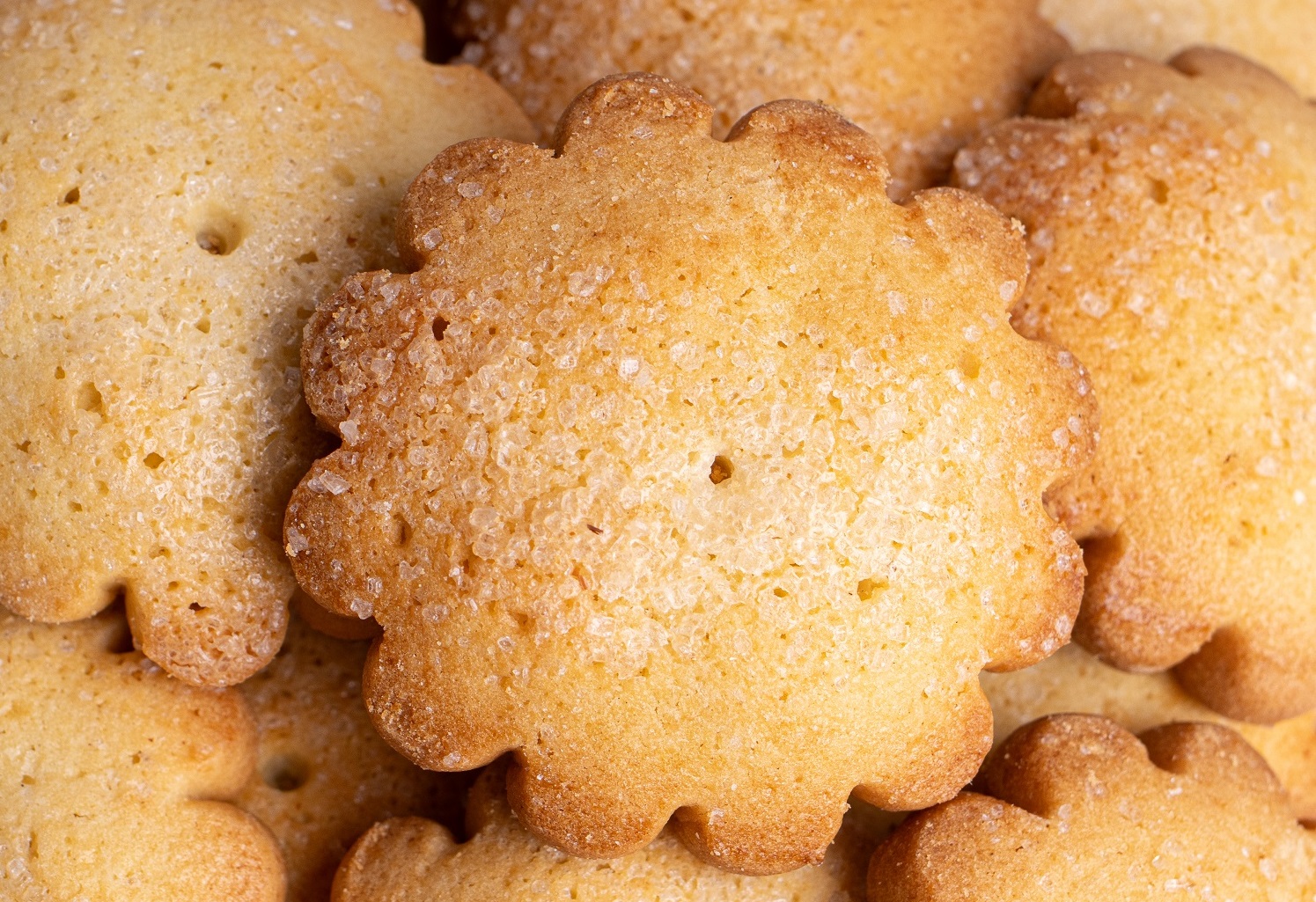 Ingredients: type 00 wheat flour, icing sugar, margarine (vegetable fats; water; vegetable oils: sunflower and soy in variable properties; salt; emulsifier: mono and diglycerides of fatty acids; natural flavourings; acidity regulator: citric acid; colourings: carotenes), butter, whole eggs, potato starch, whole milk, sugar, salt, flavourings.